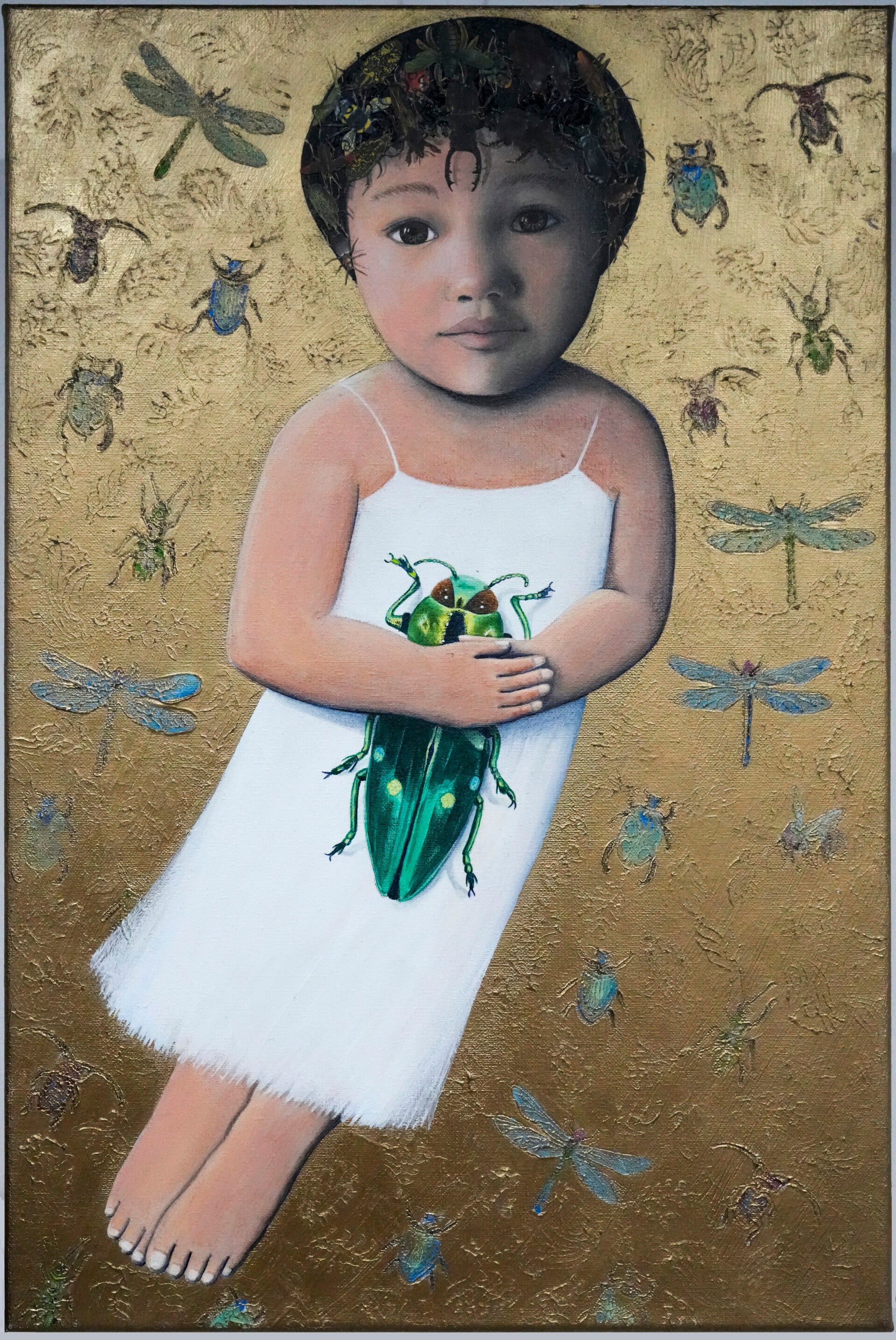 'Yari", acrylverf, collage papier op linnen, 60x40 cm (the animal protector)